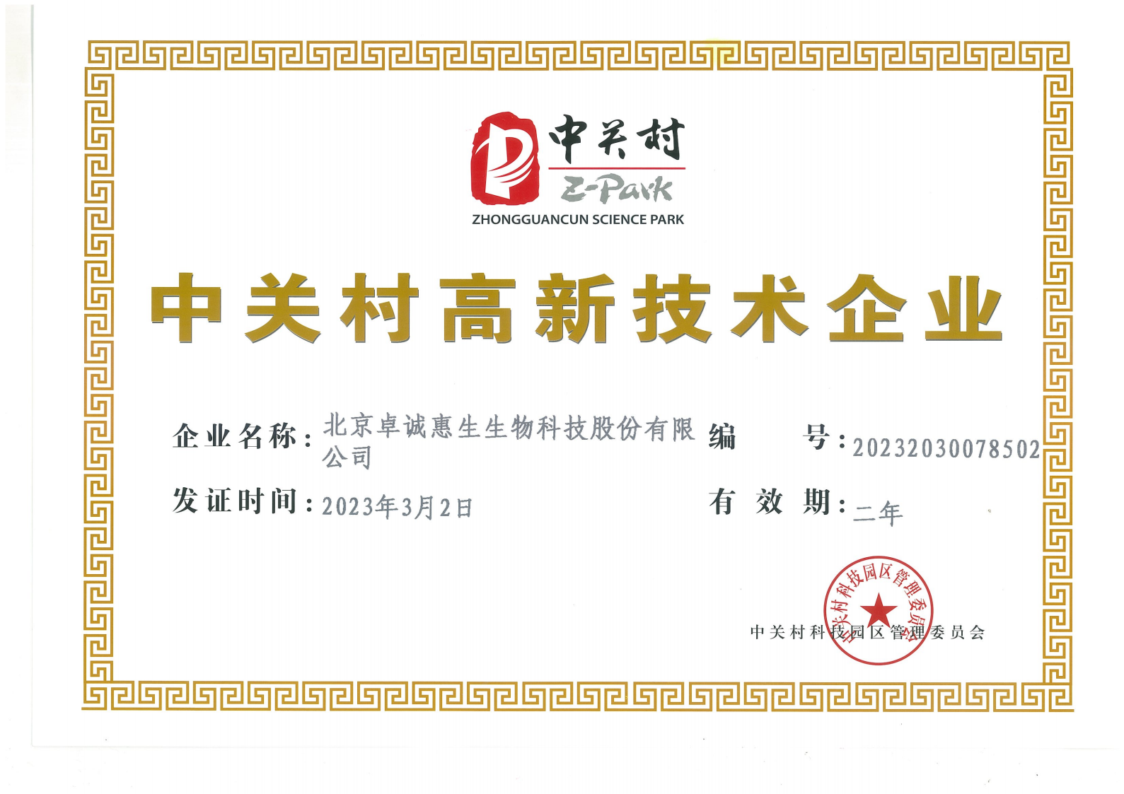 中關(guān)村高新技術(shù)企業(yè)證書(shū)