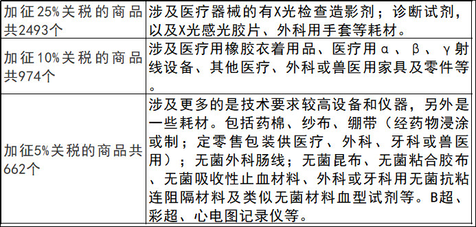 從國務(wù)院發(fā)布的公告來看,公告中提到的600億美元商品清單時(shí)發(fā)現(xiàn),涉及醫(yī)療器械的產(chǎn)品不僅有大型醫(yī)用設(shè)備儀器,同時(shí)也包括體外診斷試劑耗材!